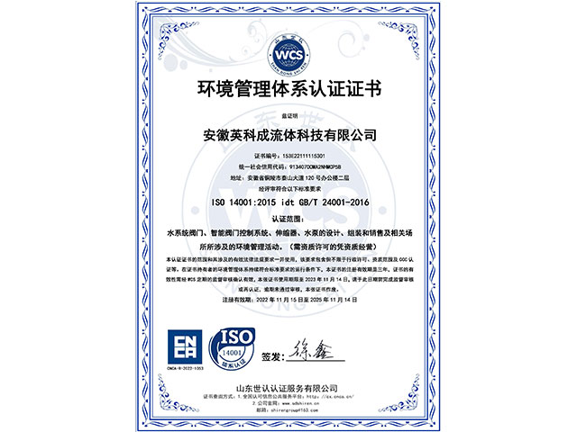 安徽英科成流體科技有限公司位于黃山腳下長江之濱的中國古銅都-安徽省銅陵市。公司注冊資金1.1億,是國內一家專業致力于給排水行業系統解決方案、閥門以及智能閥門技術研發與生產銷售服務為一體的企業。 我們擁有完善的質量控制體系和檢測設備,公司主要的產品有閘閥、蝶閥、偏心半球閥、液控蝶式止回閥、靜音止回閥、橡膠瓣止回閥、活塞式流量調節、錐型閥、節能型泵控閥、倒流防止器、減壓閥、排氣閥、排泥閥、伸縮器、閘門、啟閉機等二十多個系列,可以充分滿足客戶的一站式需求!